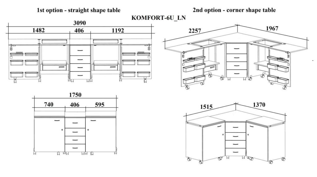 Transforming table for sewing machine with weight up to 10(15/20)kg and overlocker